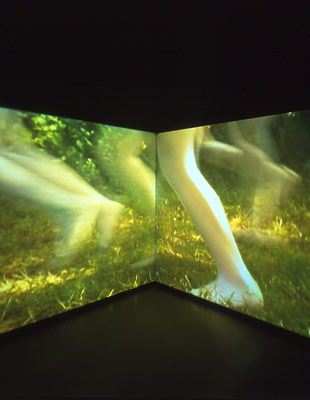 The artist explains that frustration deriving from the impossibility of traveling back in time is the theme of the video installation entitled Building Olympia, 2001. “The installation – writes Marcella Beccaria, curator of the exhibition – is constructed as a hypothetical time machine set in motion by the power of children’s legs.