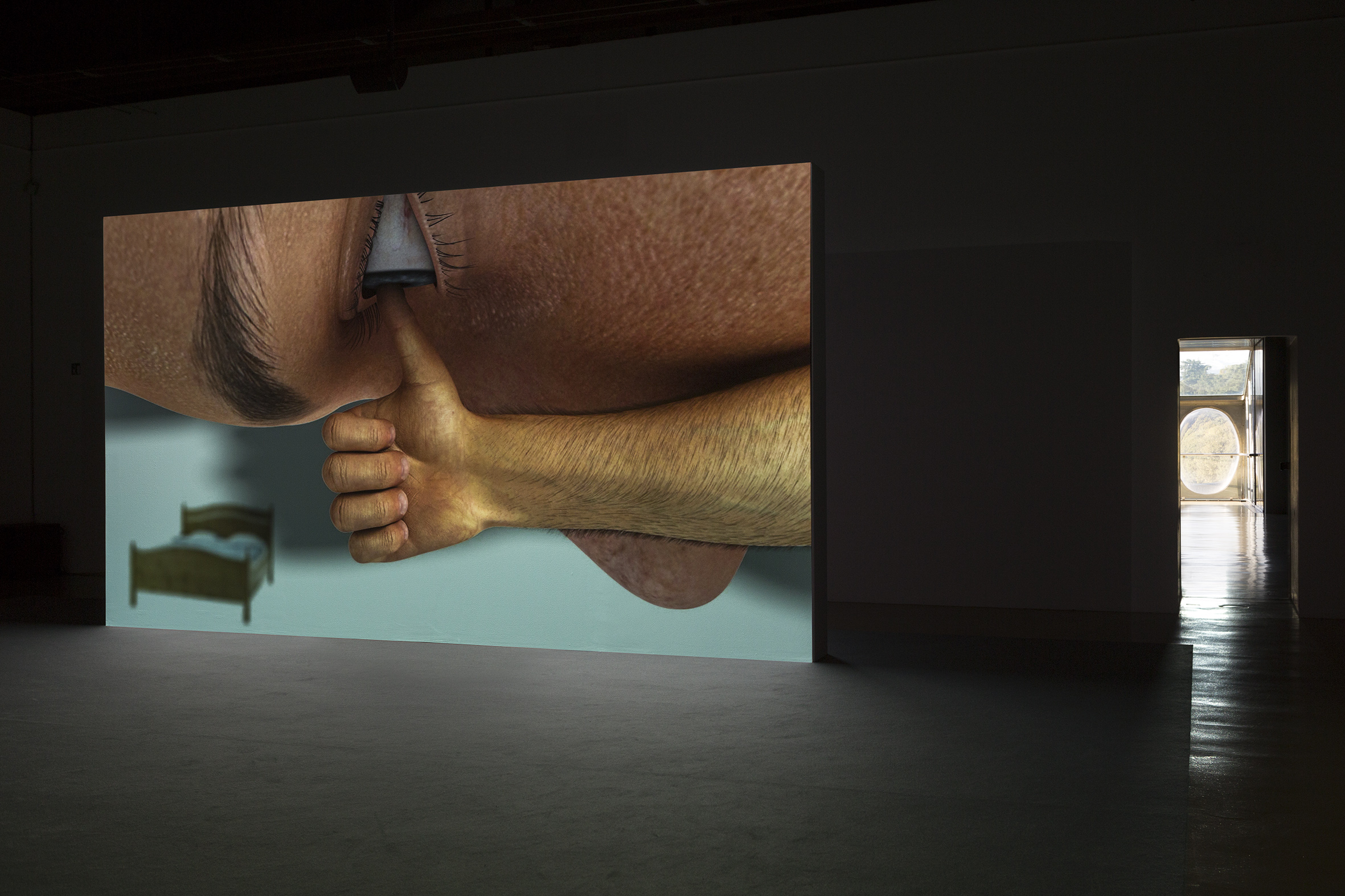 Concepita come un’installazione olistica, questa mostra è stata specificatamente pensata da Ed Atkins (Oxford, 1982) per gli spazi del nostro museo. L’aspetto spettrale delle sale del sottotetto del castello del diciottesimo secolo – caratterizzato da soffitti di travi in legno a vista – è accentuato dall’assenza di divisioni tra gli ambienti che ospitano i video. La cacofonia che si forma e si dissolve allo stesso tempo, è immaginata dall’artista come la coabitazione di singoli individui e pensieri in un cervello sognante: se l’istituzione fosse un corpo, allora il sottotetto sarebbe il subconscio dove desideri profondi si scontrano e frustrano a vicenda.