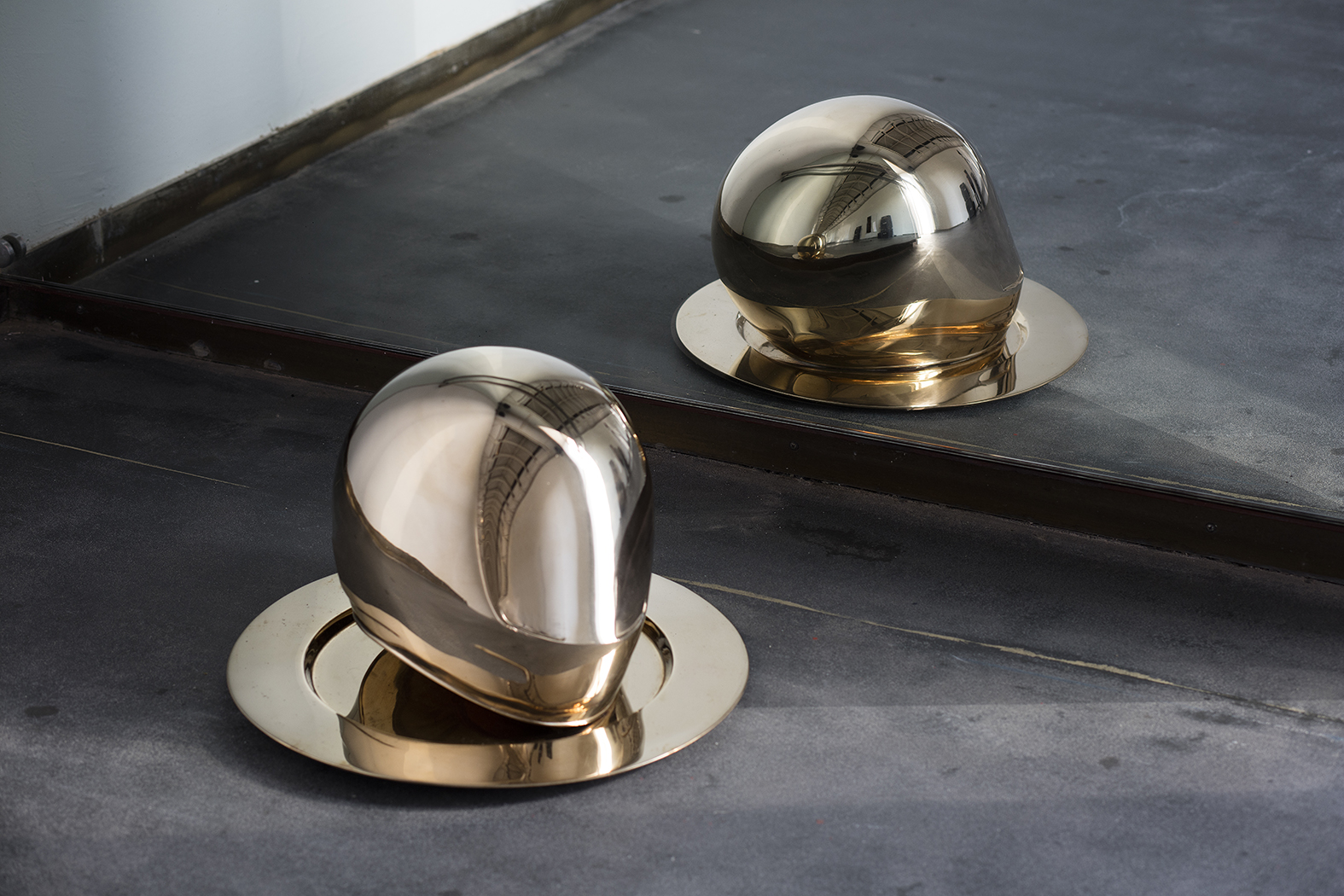 The central sculptural element in Sex is a long glass and steel wall that Imhof stages in order to define the space in an ambivalent way. Untitled (Glass Wall), 2019-2020, is an architectural and sculptural work comprising glass panels mounted on steel bases. While reminiscent of walls, the barriers erected to manage crowds, separate and distance people in our cities, the “glass wall” negates their function, standing as a discontinuous, traversable structure defined by constant transparency. Like a long spine, the work runs through the entire space of the Manica Lunga, dividing it into two symmetrical corridors that host works displayed with the concepts of doubling and mirroring in mind.