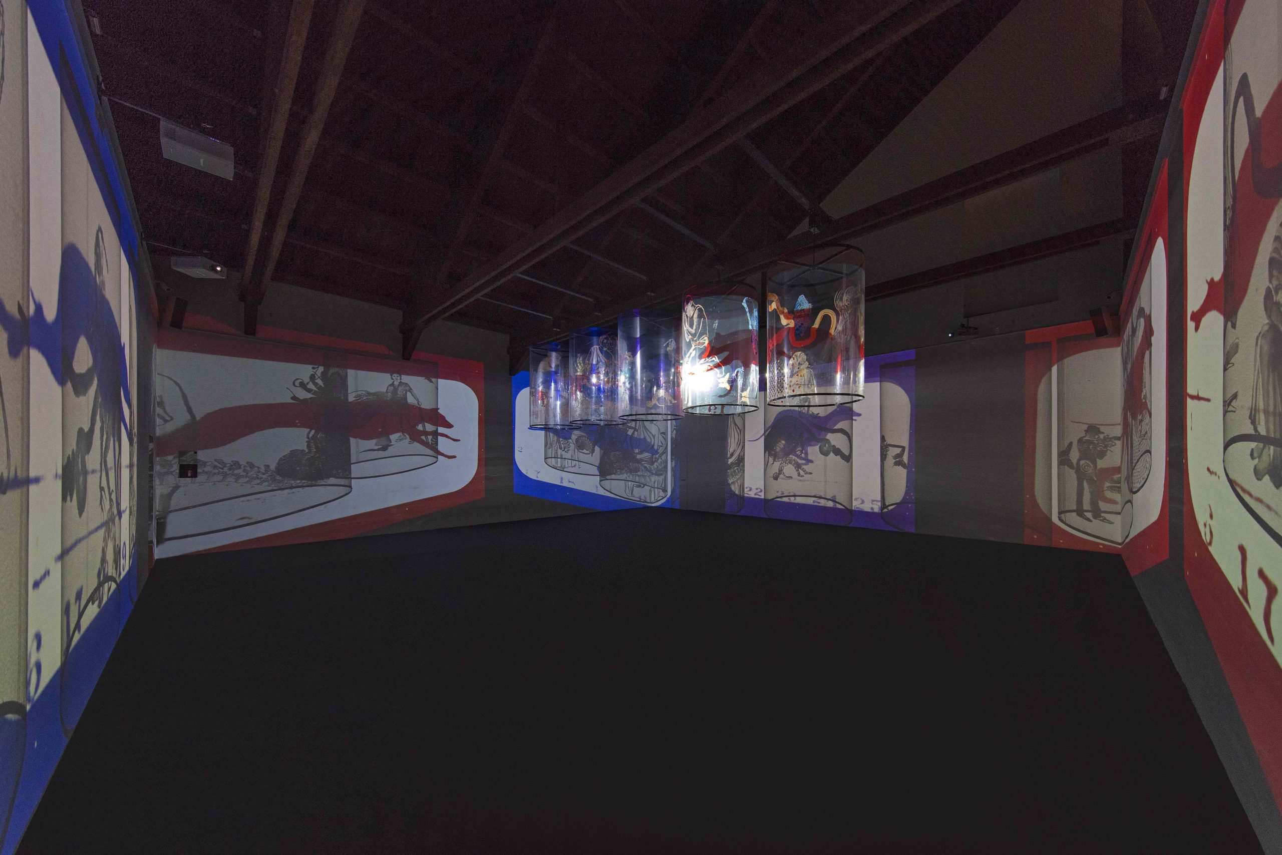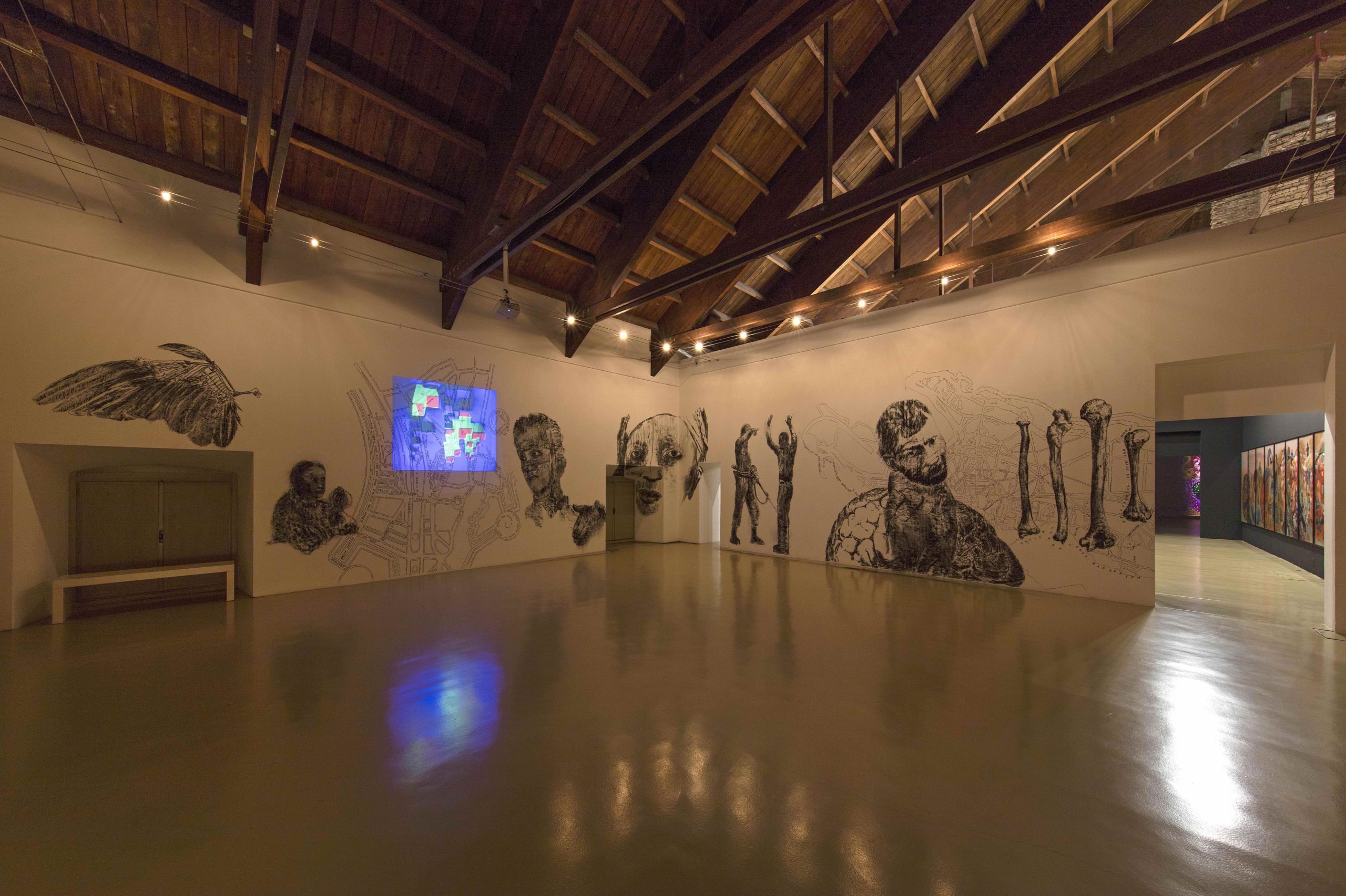 Developed in collaboration with the artist, both parts of the retrospective Nalini Malani: The Rebellion of the Dead present works in non-chronological order to highlight the grand narratives that recur in her practice since 1969. To contrast the traditional meaning of the word “retrospective,” Malani has created two newWall Drawing/Erasure Performance works, one for the Castello and one for the Centre Pompidou. The work at Castello presents characters and iconographic allusions to Indian art, to Greek mythology and to stories of contemporary violence and discrimination. References to contemporary writers such as Italo Calvino (1923-1985) and the poet Attipat Krishnaswami Ramanujan (1929-1993) are also present.