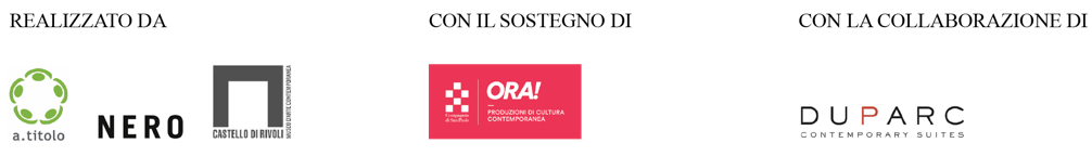 Il progetto è realizzato con il sostegno della Compagnia di San Paolo nell’ambito del bando “ORA! Produzioni di Cultura Contemporanea” e con la collaborazione di Duparc Contemporary Suites.