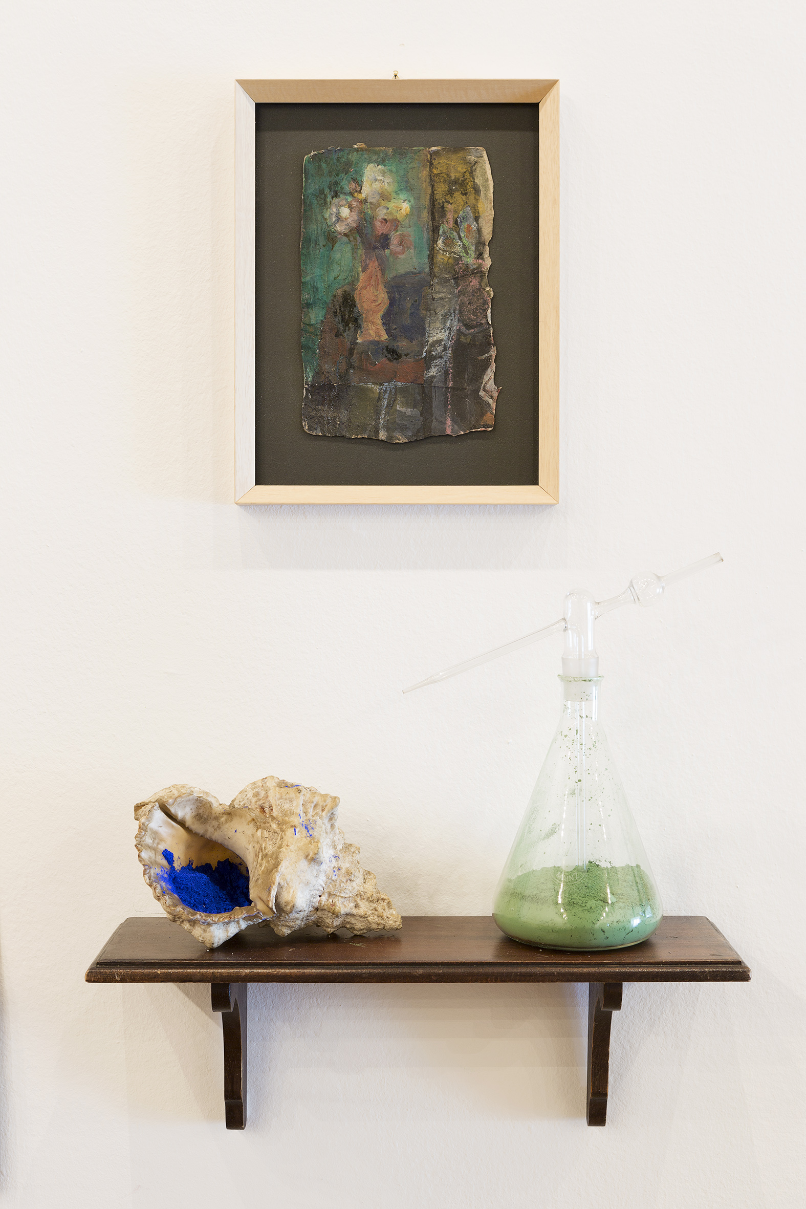Oltre a riprodurre gli ambienti dell’atelier di Boghiguian a Il Cairo – le stanze interne colme di opere e disegni, barattoli di pigmento, tappeti, oggetti orientali e un ampio terrazzo che affaccia sul Nilo, sorvolato da stormi di uccelli – la sala ospita anche opere giovanili mai mostrate al pubblico prima d’ora.
