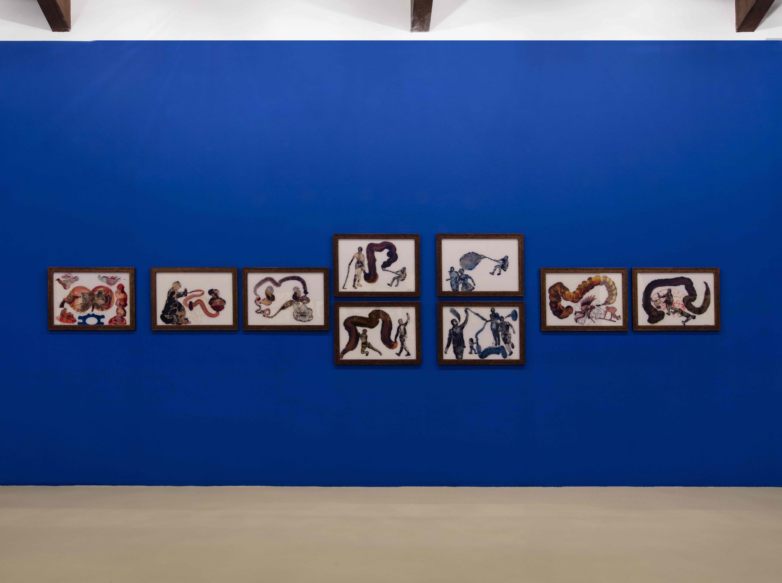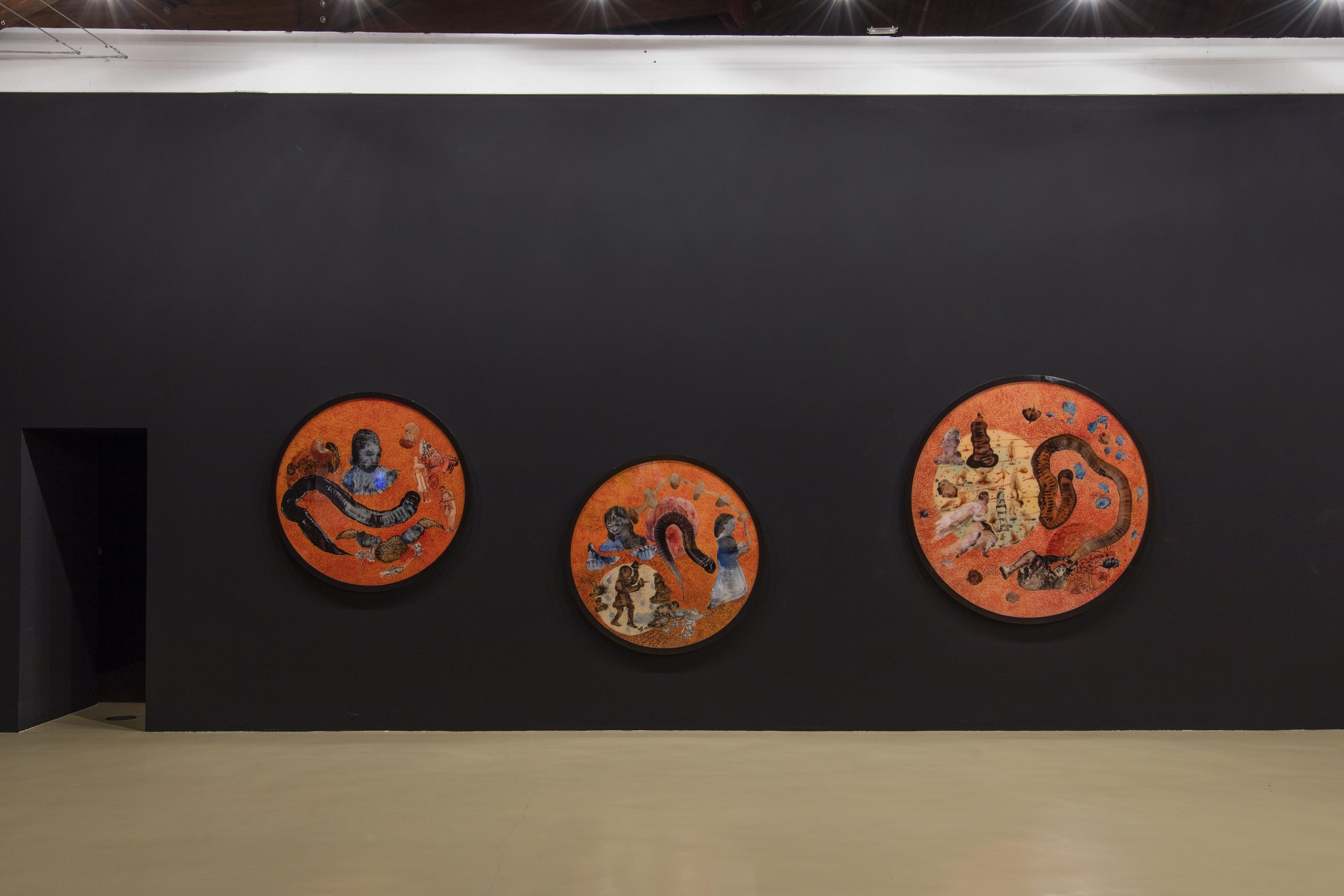 Sviluppate in dialogo con l’artista, le due parti della retrospettiva Nalini Malani: La rivolta dei mortis ono ordinate in sequenza non cronologica, che invece privilegia i grandi temi che ricorrono nelle opere di Malani a partire dal 1969. In contrasto con il significato tradizionale del termine retrospettiva, per il Castello, come già per il Centre Pompidou, Malani ha creato un nuovo Wall Drawing/Erasure Performance (Disegno a muro/Performance di cancellazione), nel quale spiccano personaggi e rimandi iconografici e letterari che spaziano dall’arte indiana, ai miti greci, da citazioni letterarie tra cui Italo Calvino (1923-1985) e il poeta Attipat Krishnaswami Ramanujan (1929-1993), a storie di violenza e discriminazione contemporanea.