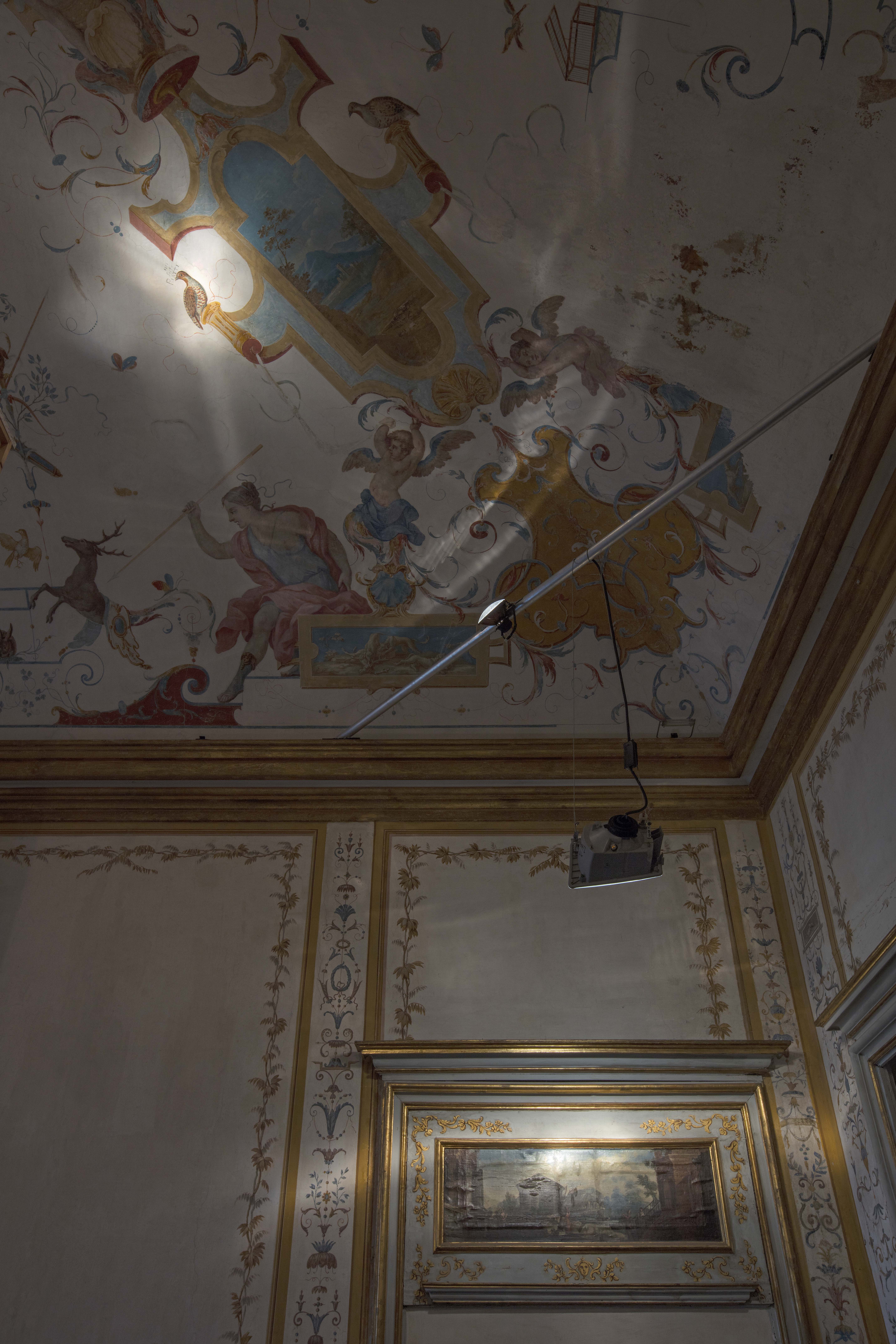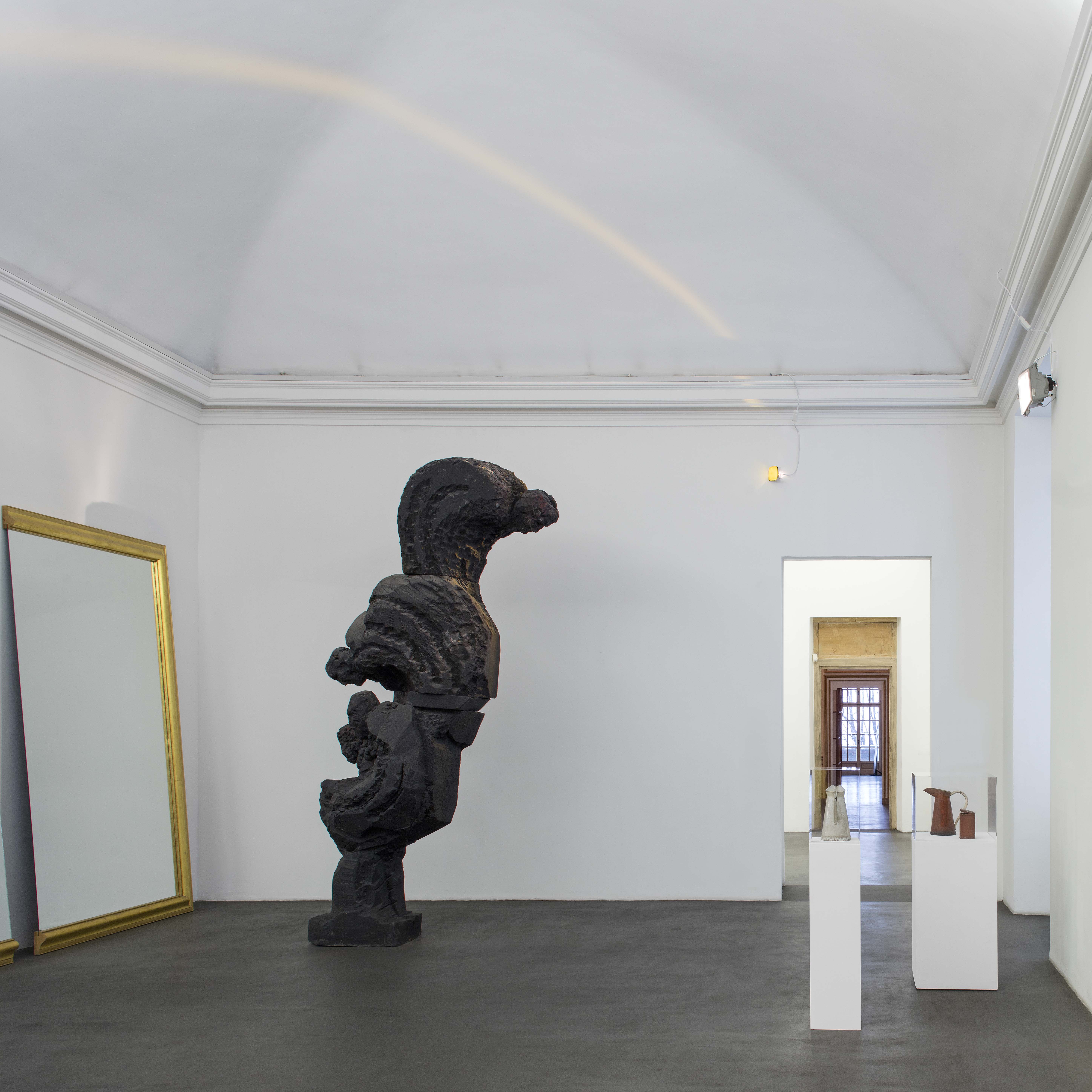 “Lo studio delle decorazioni storiche dell’edificio” – afferma Marianna Vecellio, curatore della mostra – “offre lo spunto per una riflessione sul Barocco, considerato dall’artista come metafora di un eclettismo di stili, convivenza di pieno e vuoto nonché tendenza alla rappresentazione di una dimensione infinita dello spazio e del tempo. Come in una grottesca pièce teatrale, Sole invita lo spettatore a ripensare il passato con profonda ironia che,come un fantasma, riappare tra bagliori di luce e buio”.