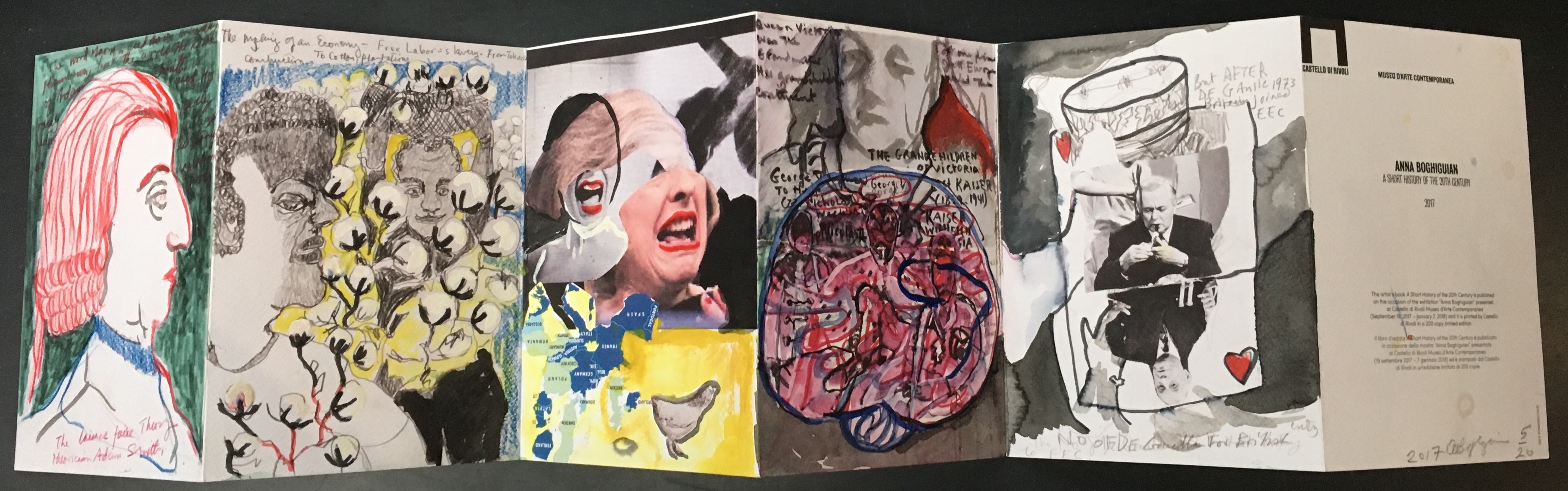 Il libro d’artista A Short History of the 20th Century è pubblicato in occasione della mostra Anna Boghiguian ed è stampato dal Castello di Rivoli in un’edizione limitata di 20 copie.